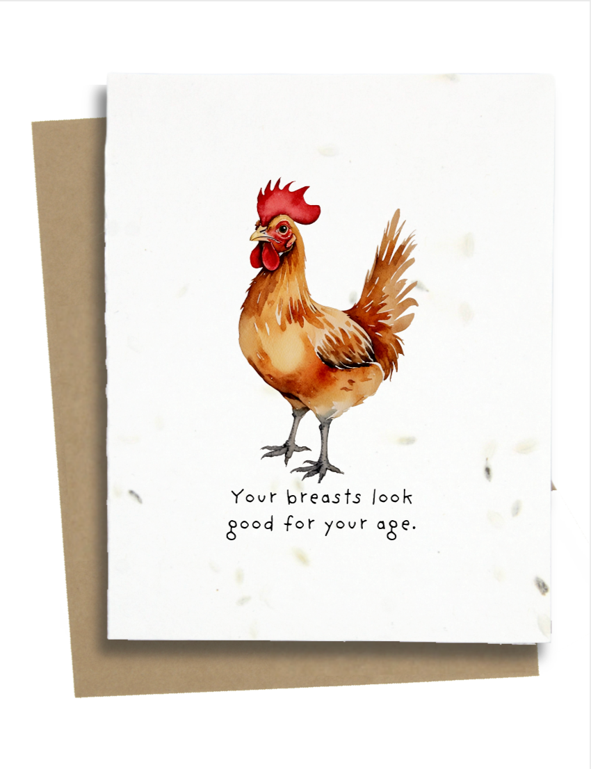 Brighten her day with this humorous rooster card for women. Plantable seed paper ensures it grows into wildflowers after the fun.