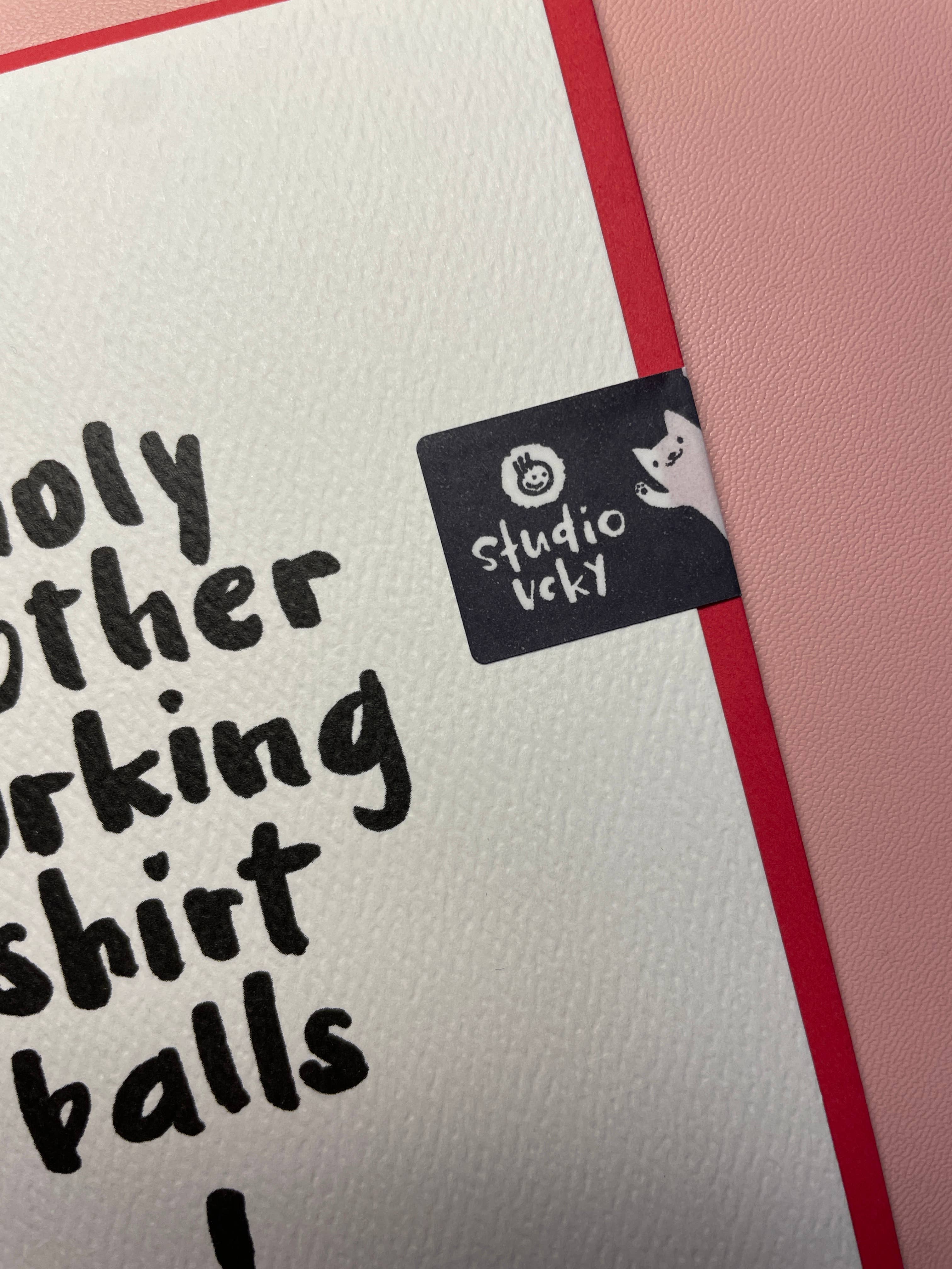 There is no swearing in The Good Place. Size: A2 (4.25x5.5) Card is blank inside. Printed with vibrant Indigo Ink on a felt-textured Neenah card stock. Attached to a red envelope with a card clasp sticker (cello sleeves available on request).