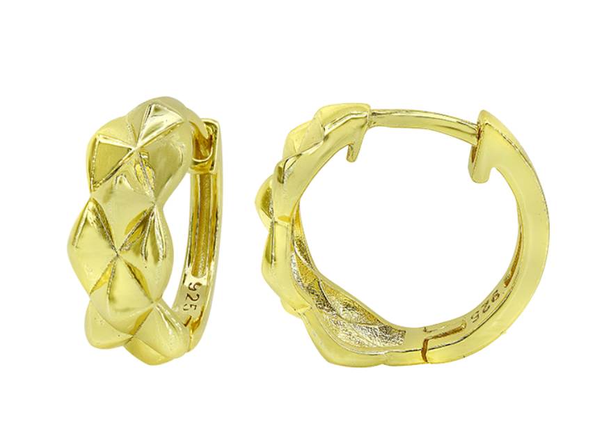 Sterling silver with gold, diamond cut round hoop earrings, 18mm diameter, 6mm thickness