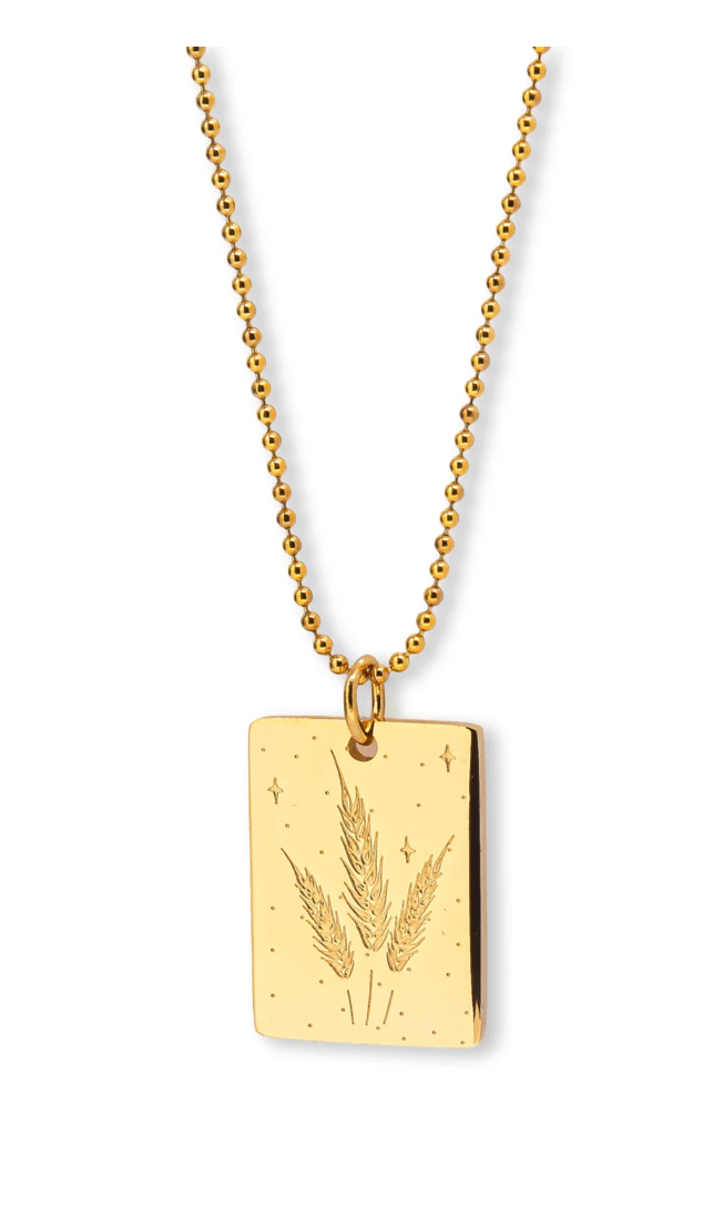 SHE IS THE PRAIRIE: e&e has deep roots in Canada's Prairies with an inspired connection to our 'She is The Prairie' Necklace. Symbolized by three wheat stalks against a starry sky, expressing life's abundance, prosperity and connection to the land, guided by bright stars through dark times.