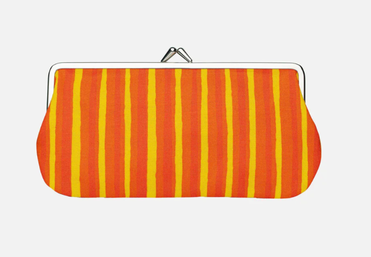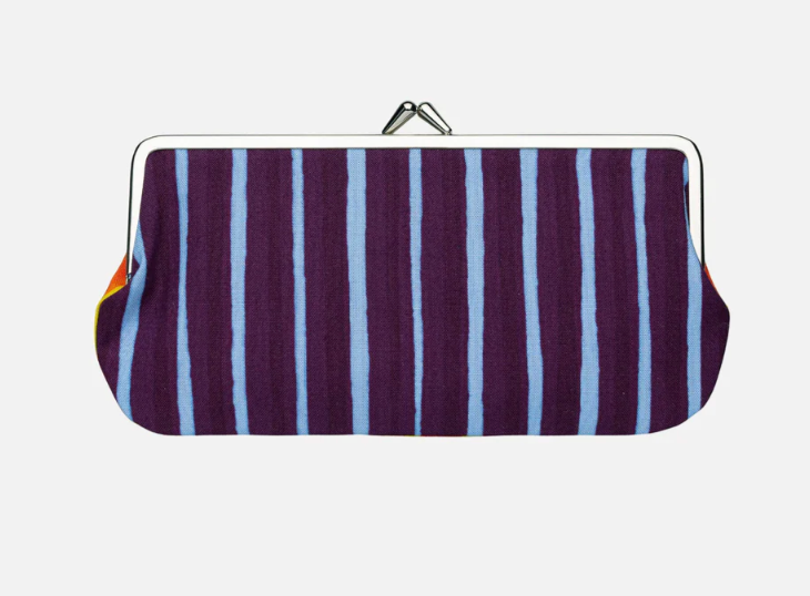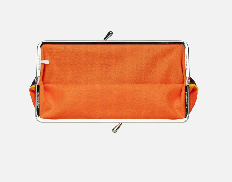 The Silmälasikukkaro purse is made of cotton in the Mini Unikko pattern, which is printed in Helsinki. The rectangular purse has a metallic frame that is easy to snap open and shut.