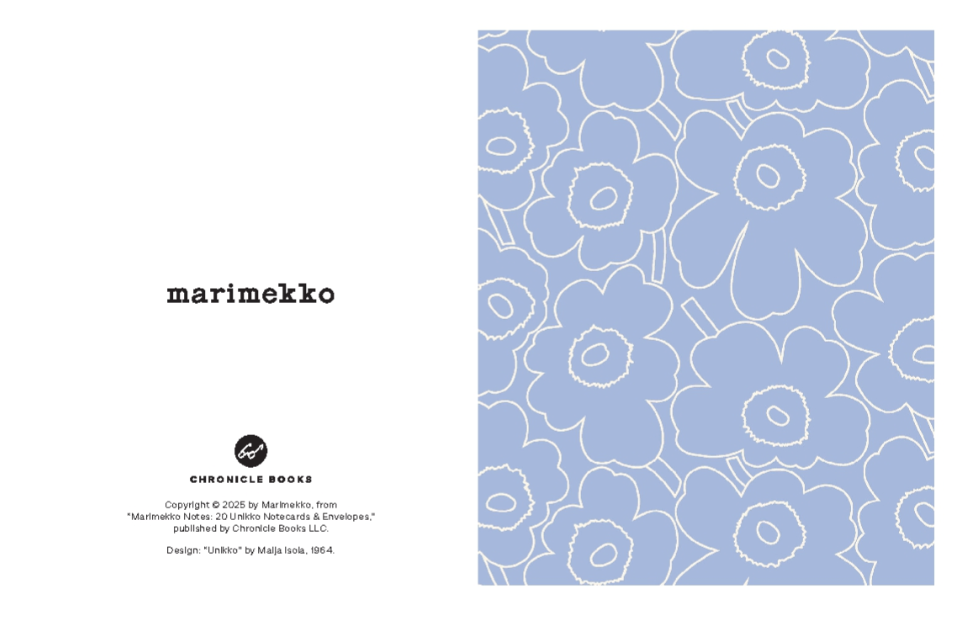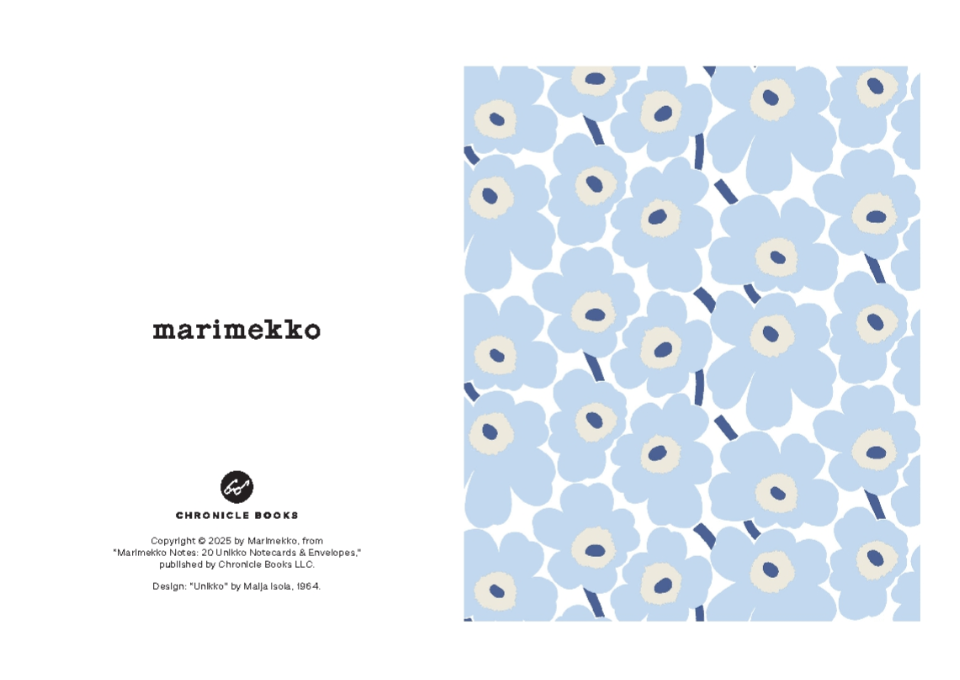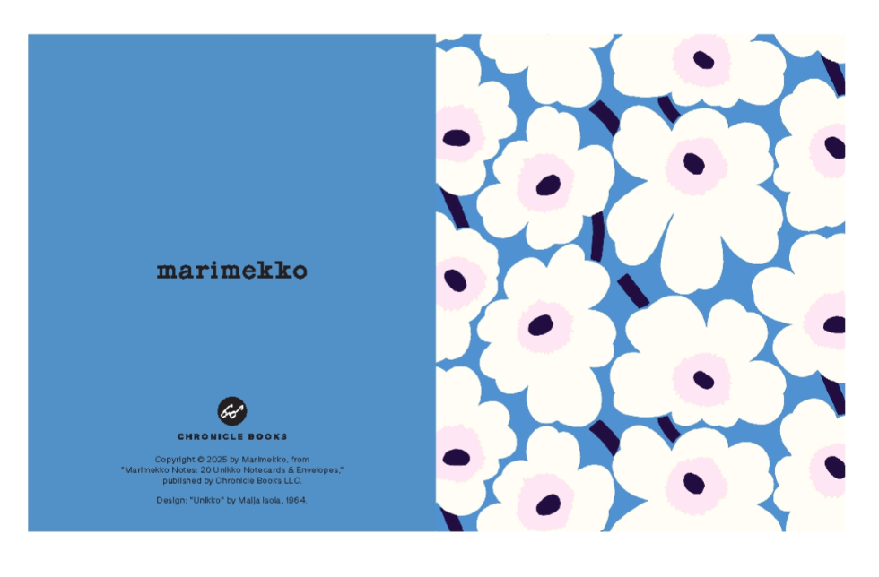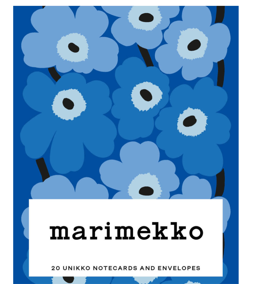 MARIMEKKO NOTECARD SET: The ultimate in stationery style. Set of 20 assorted notecards (10 repeating designs) featuring Marimekko's most iconic pattern, Unikko, in a beautiful blue color palette. These petite blank notes are perfect for any message or greeting.