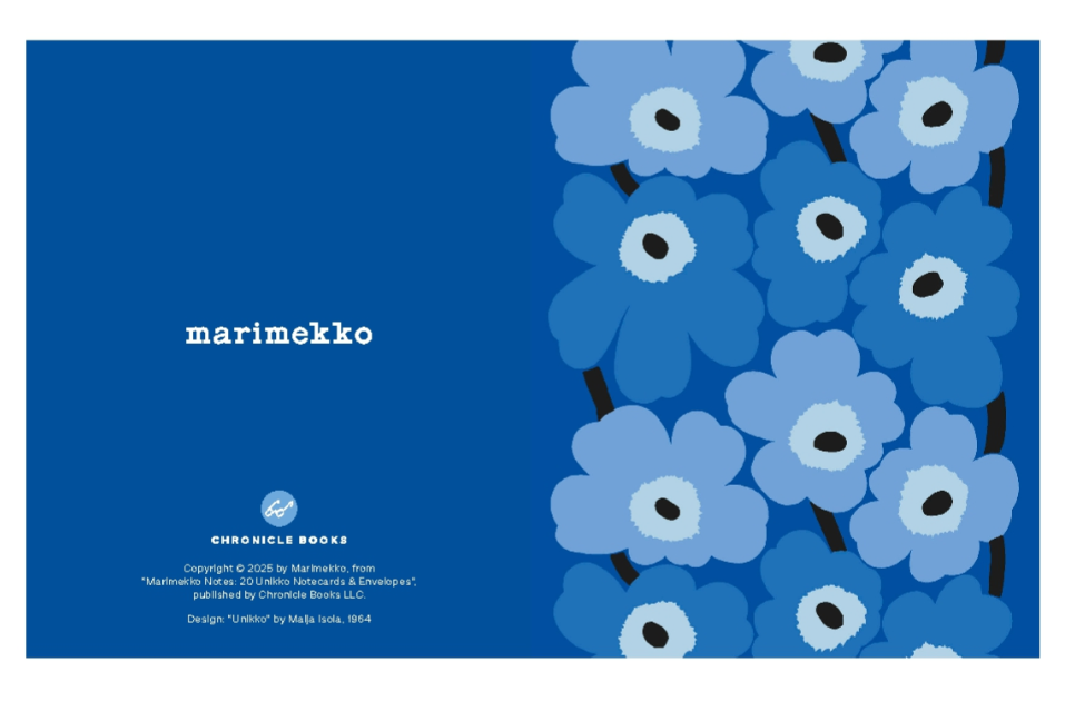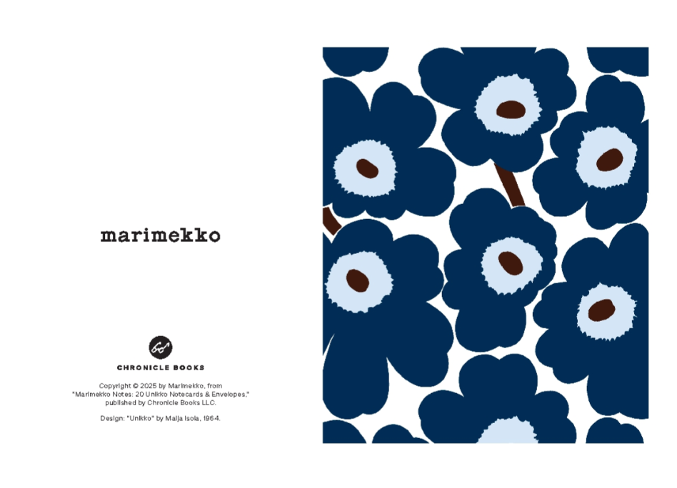 The magic of Marimekko is captured in this deluxe boxed notecard set featuring the design house's most iconic pattern, Unikko, in a stunning blue color palette.