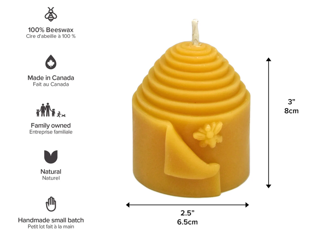 Measuring at 3" by 2.5", Honey Candles® Peek-a-Bee Pillar is handmade with 100% pure Canadian beeswax, producing the warm characteristic glow of beeswax candles, with a soothing natural scent. Like all of our beeswax candles, the Peek-a-Bee Pillar is made with only all-natural, toxin-free ingredients. Better yet, every purchase of this candle supports an immensely important cause. For every Honey Candles® Peek-a-Bee Pillar candle you purchase, $2 will go towards funding vital research to save our bees. Thank you to everyone who supports this great cause.