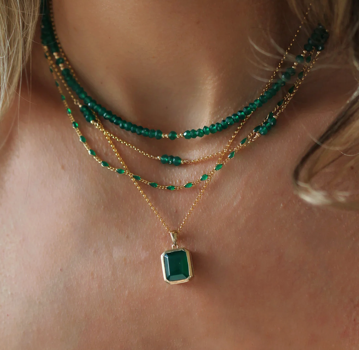 Please note: this listing is for the Florance Necklace in Green Onyx only. It has been shown layered on the model for styling inspiration.