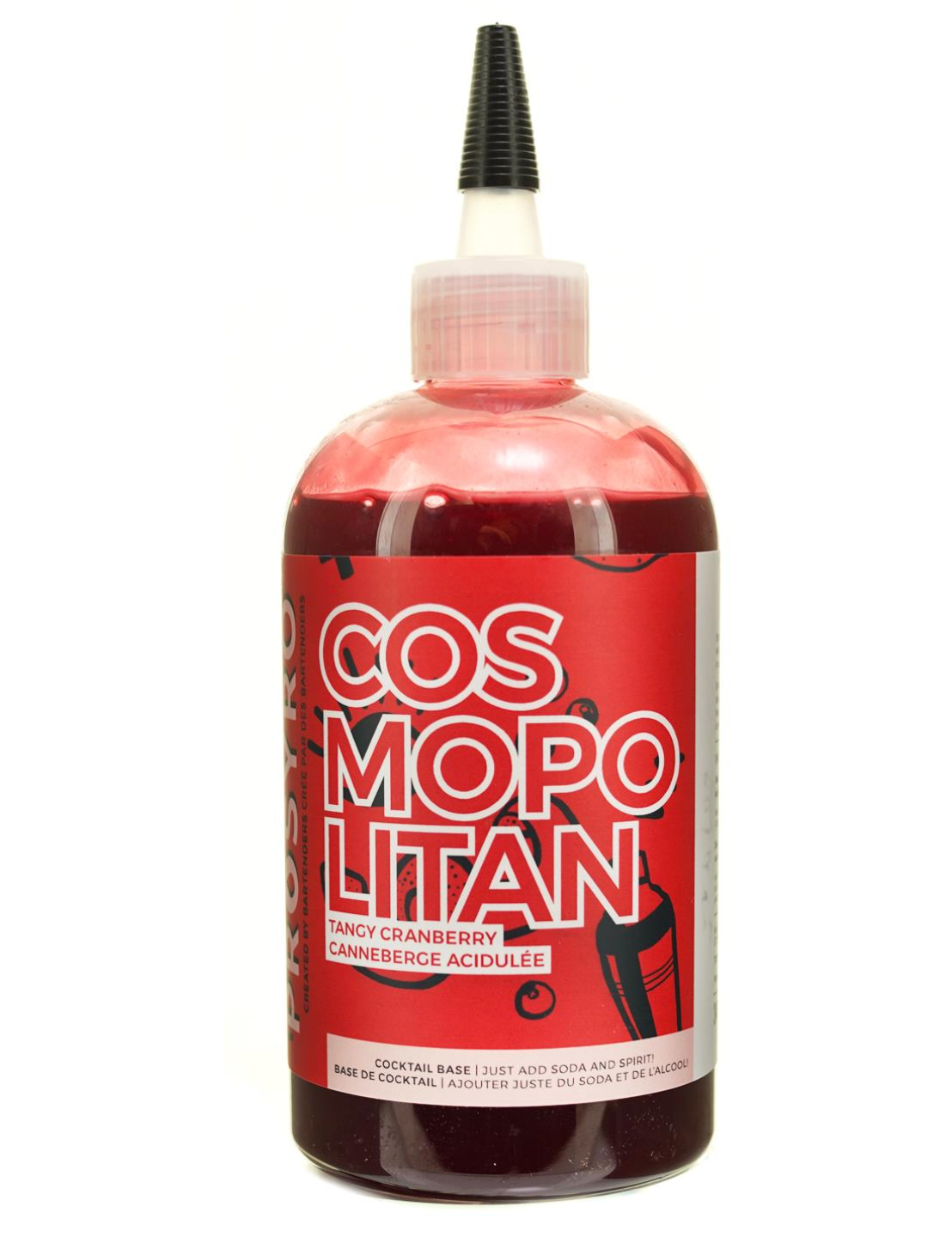 Making a cocktail has never been easier! Here's a delicious cosmopolitan premix made with fresh cranberry and quality ingredients! Just add alcohol and syrup to your glass, stir, trop with soda, and you're done.