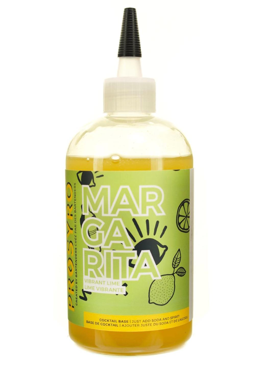 Making a cocktail has never been easier! Here's a delicious margarita made with fresh lime and quality ingredients! Just add alcohol and syrup to your glass, stir, trop with soda, and you're done.