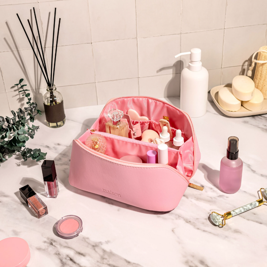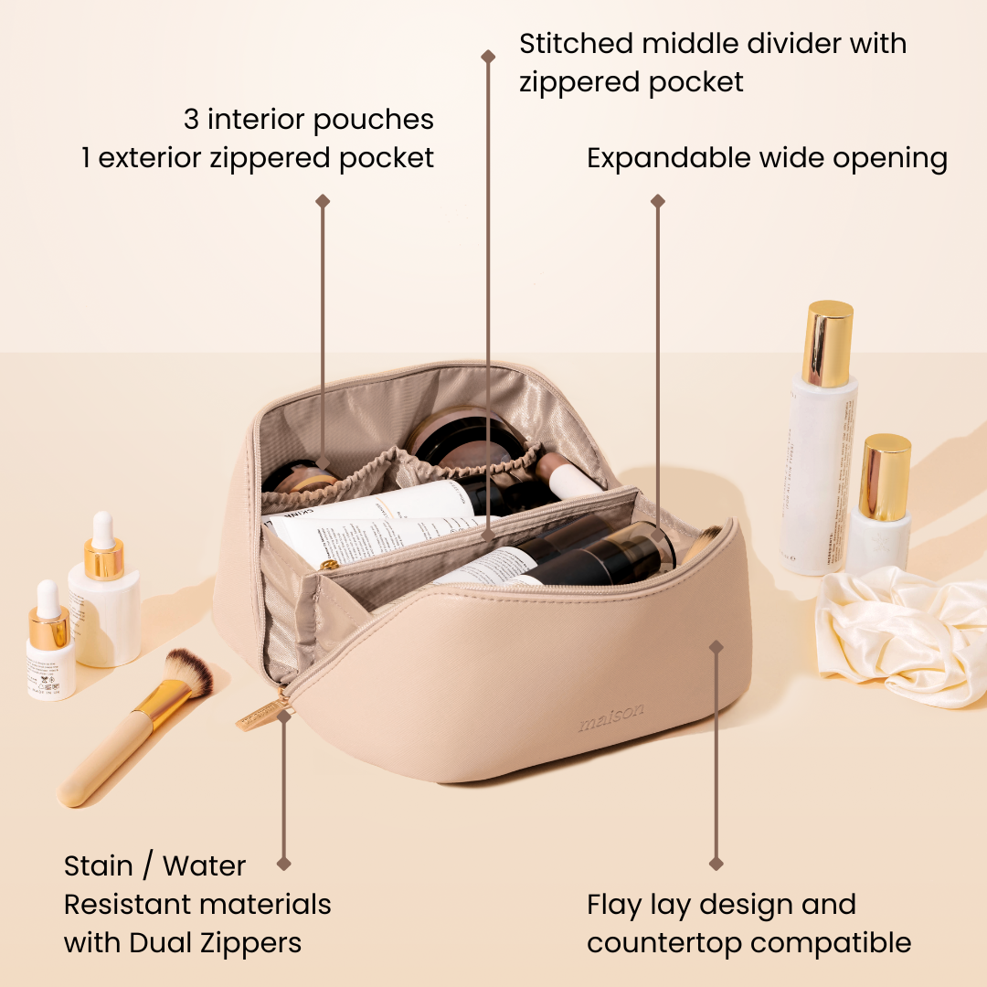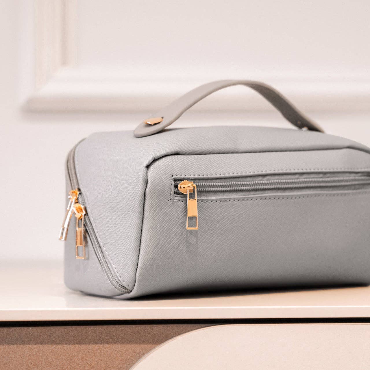 Meet SALY, the revolutionary make up bag - it's the perfect solution for your on-the-go beauty needs! Our unique, expandable design allows you to easily store all of your full-sized skincare products, cosmetics, and jewelry in one convenient location. The bag is made with high-quality materials and is designed to be travel-friendly, making it the ultimate accessory for any jet-setter. With our stylish and functional makeup bag, you'll never have to worry about disorganized beauty essentials again!