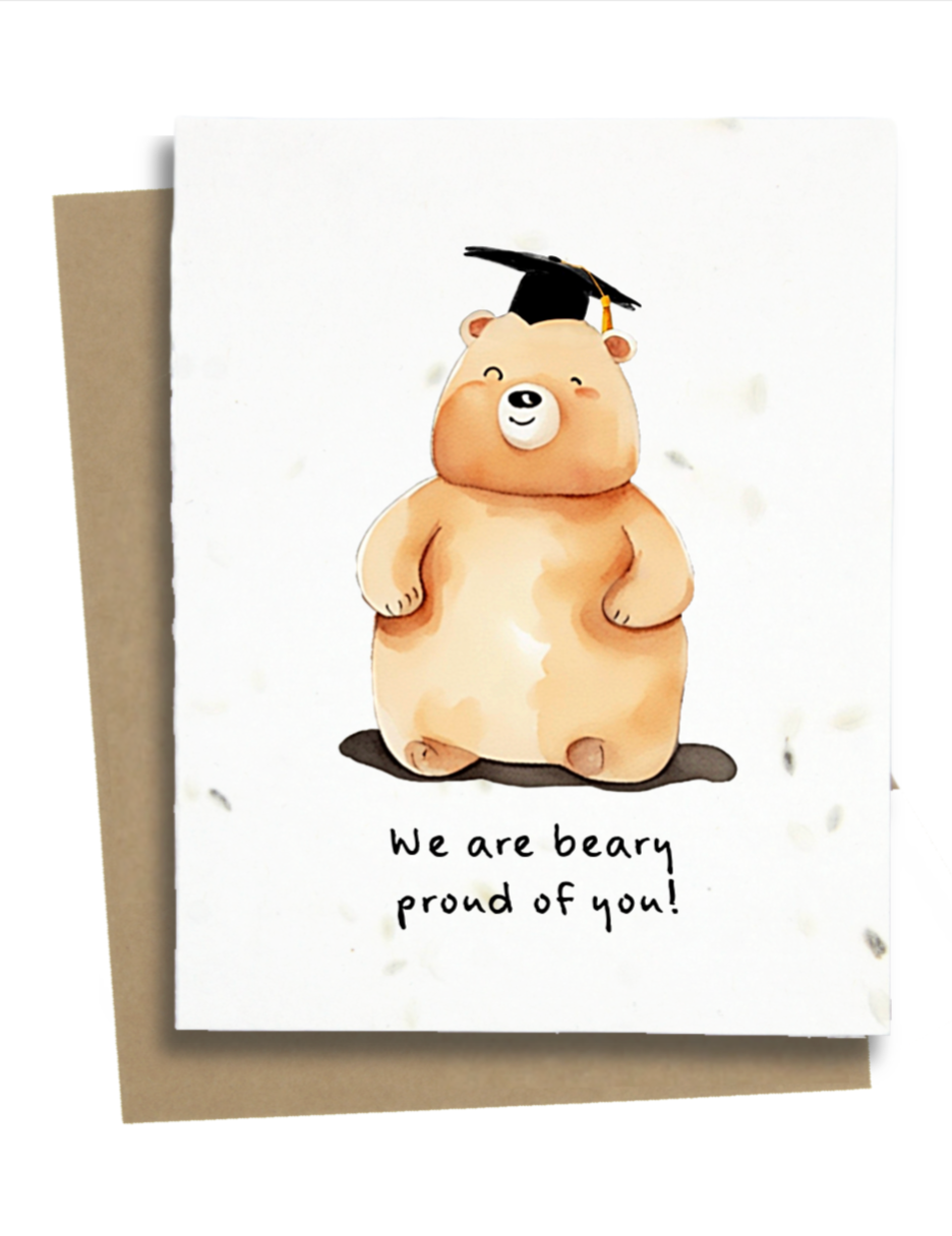 Celebrate their achievement with our adorable Graduation Bear Card! Handmade with plantable seed paper.