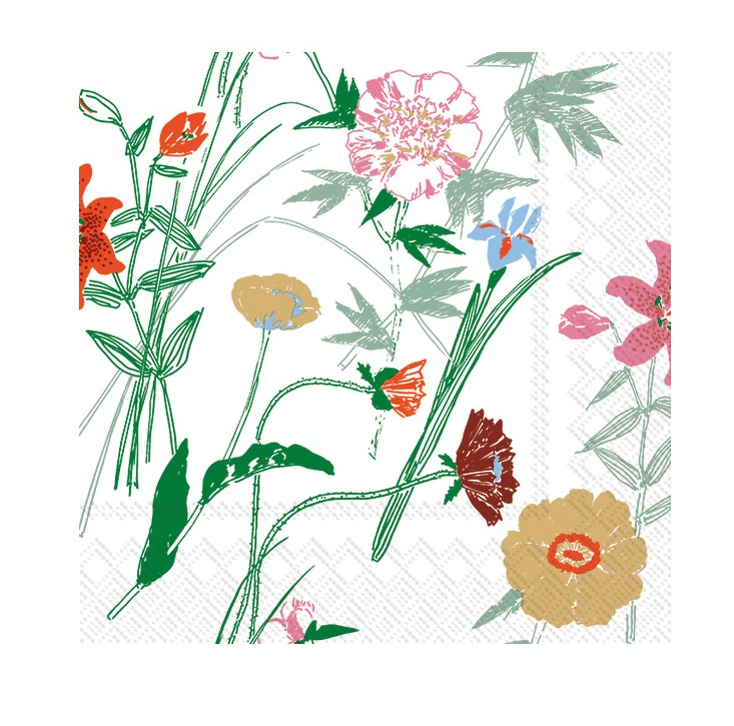 Package of twenty paper napkins available in either cocktail or luncheon size. Printed in Germany on recycled tissue.